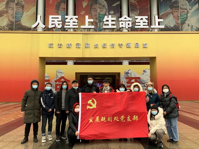 本网讯 [通讯员 蒋张]为更好学习伟大抗疫精神,争做新时代优秀党员,12月29日下午,发展规划处全体同志与文学院宁欢等8名学生代表共赴“武汉客厅”开展“师友学友”活动,参观抗击新冠肺炎疫情专题展览——“人民至上,生命至上”。