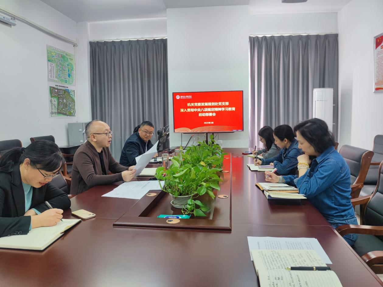 本网讯(通讯员 席中刚)3月24日上午,发展规划处党支部在行政楼432会议室召开深入贯彻中央八项规定精神学习教育启动部署会。会议由党支部书记李立亚主持。